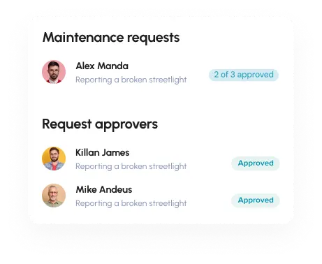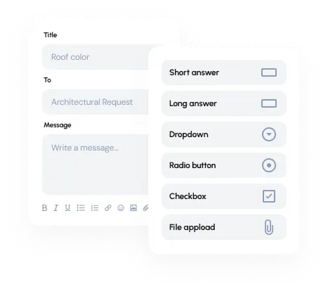 Ask any questions, require uploaded documents, and send the requests to the right people. Use custom statuses to track the progress.