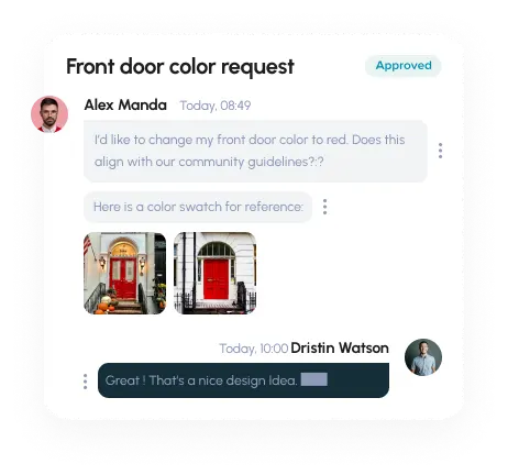Keep homeowner conversations organized and separate within each request form. Ensure the right committee or board members receive and respond to communications.